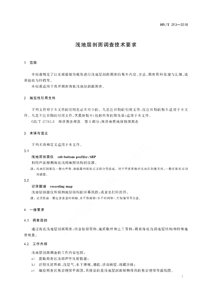 HY/T 253-2018 浅地层剖面调查技术要求