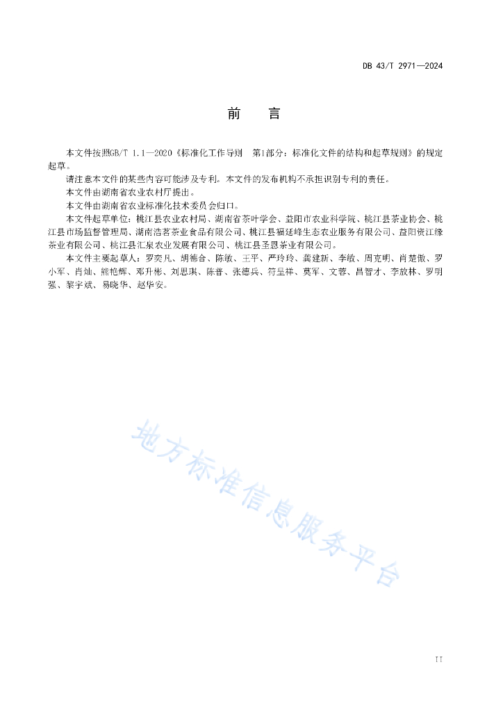 桃江县农业农村局、湖南省茶叶学会、益阳市农业科学院、桃江县茶业协会、桃江县市场监督管理局、湖南浩茗茶业食品有限公司、桃江县福延峰生态农业服务有限公司、益阳资江缘茶业有限公司、桃江县汇泉农业发展有限公司、桃江县圣恩茶业有限公司