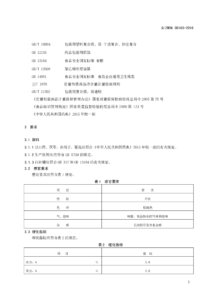 Q/ZWSK 0016S-2016 郑州万生生物科技有限公司 山药茯苓压片糖果
