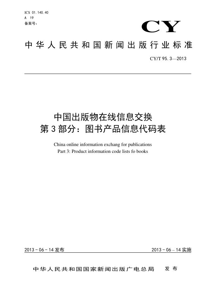 CY/T 95.3-2013 中国出版物在线信息交换 第3部分:图书产品信息代码表
