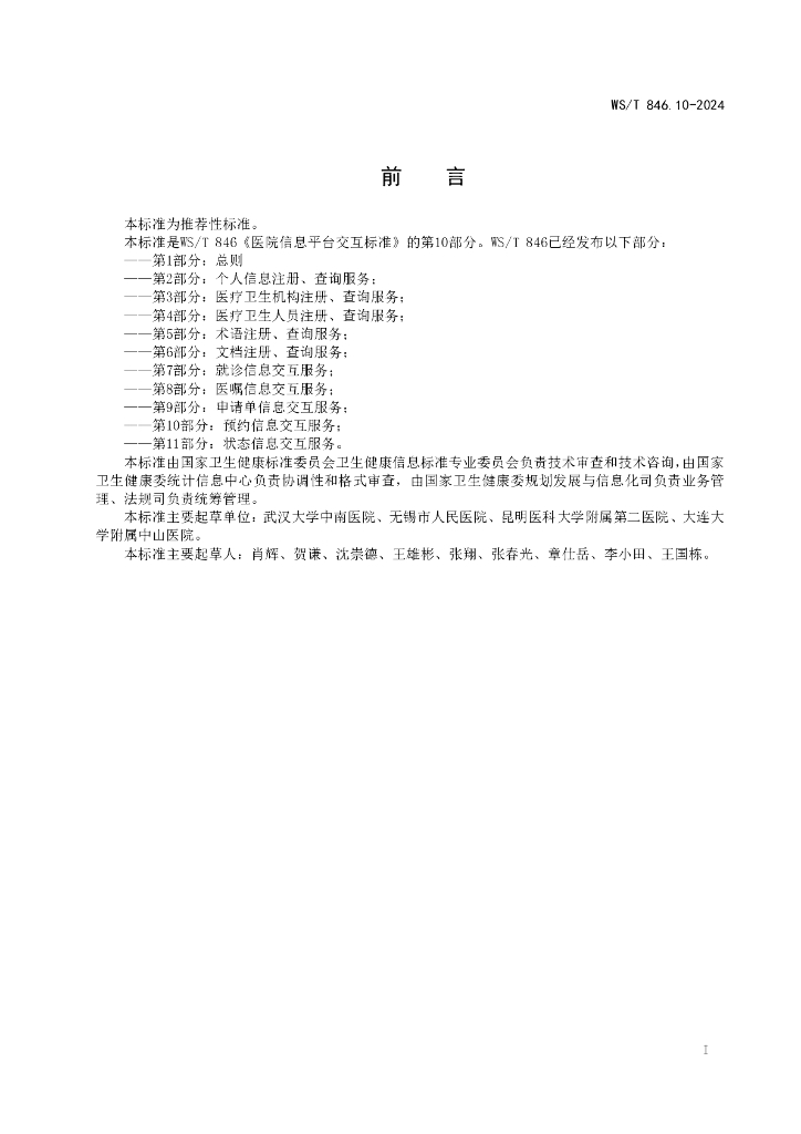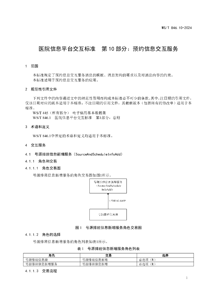 WS/T 846.10-2024 医院信息平台交互标准 第10部分:预约信息交互服务