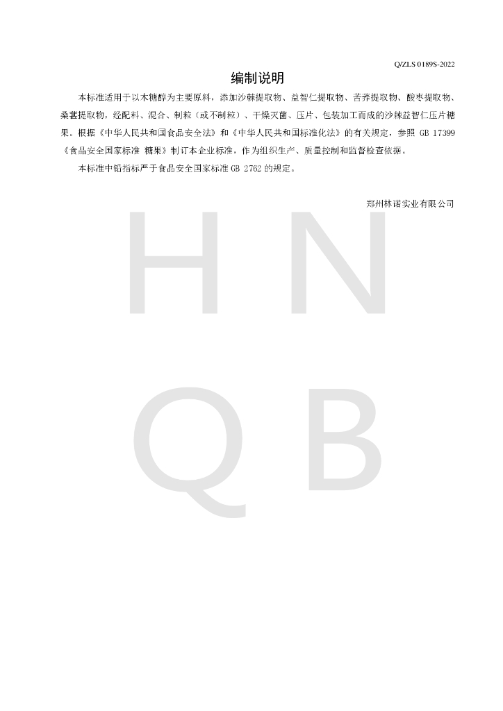 Q/ZLS 0189S-2022 沙棘益智仁压片糖果