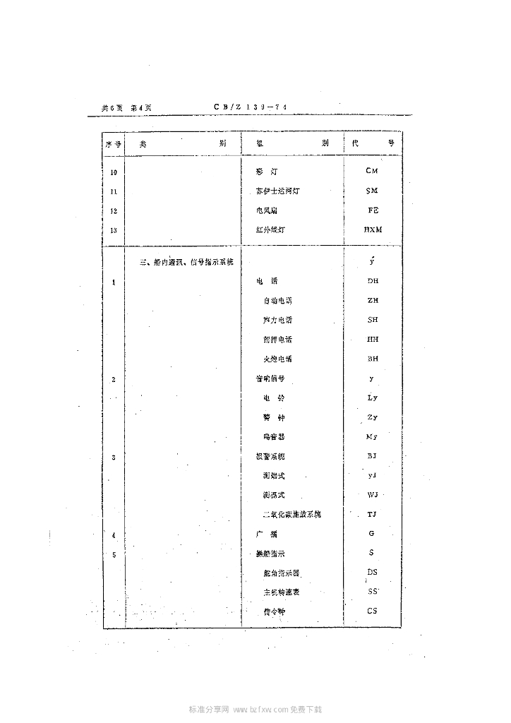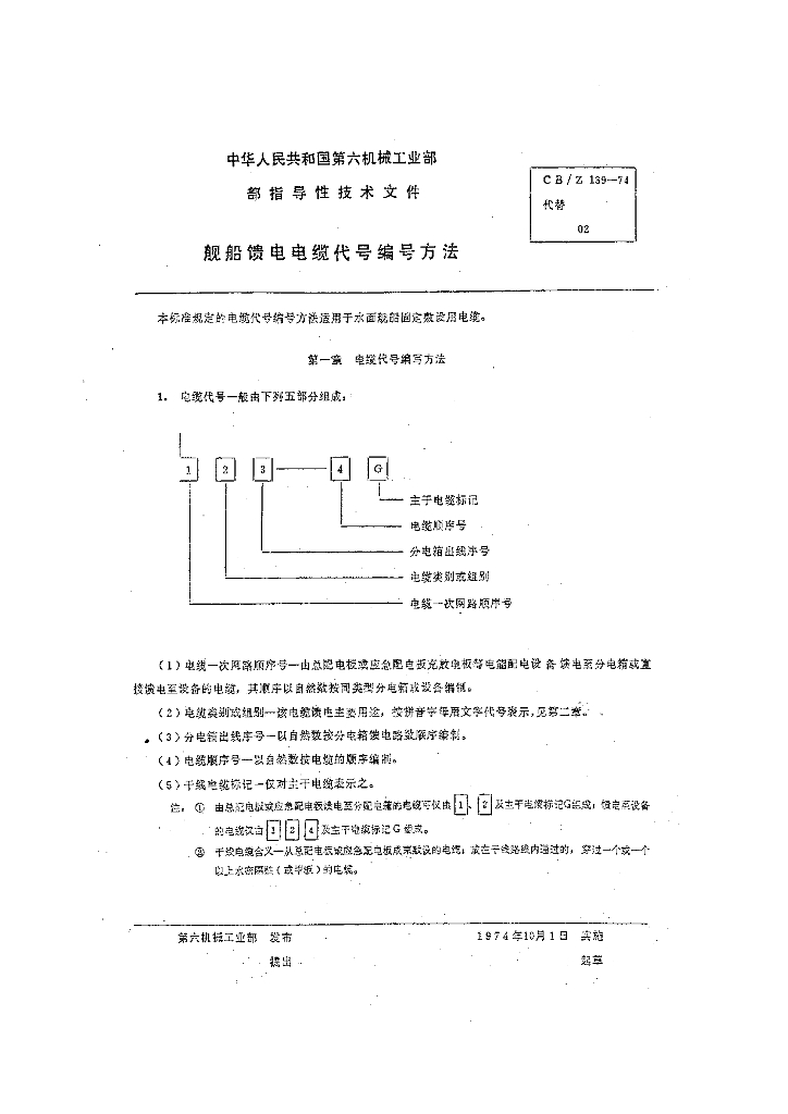 CB/Z 139-1974 舰船馈电电缆代号编号方法