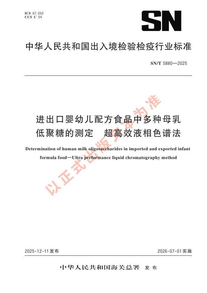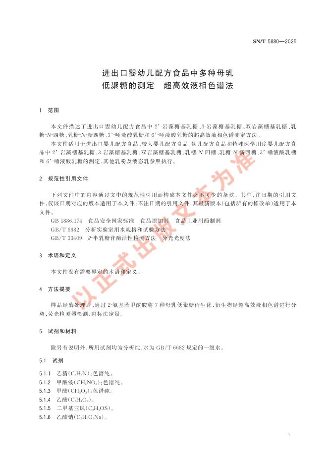 SN/T 5880-2025 进出口婴幼儿配方食品中多种母乳低聚糖的测定 超高效液相色谱法