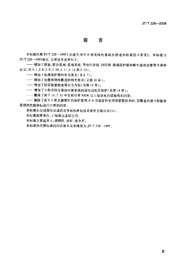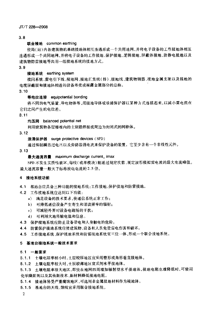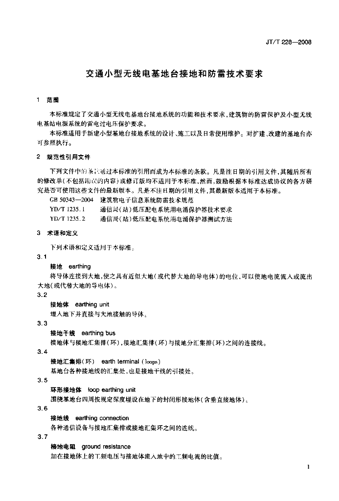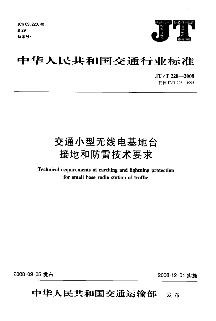 JT/T 228-2008 交通小型无线电基地台接地和防雷技术要求