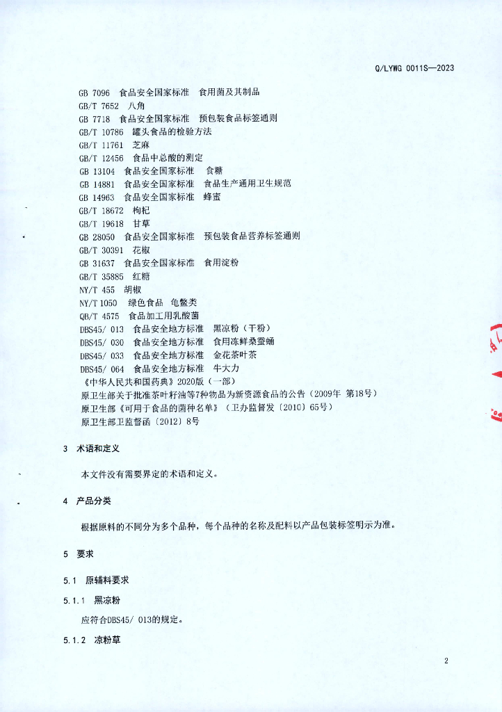 Q/LYWG 0011S-2023 益生菌可吸龟苓膏