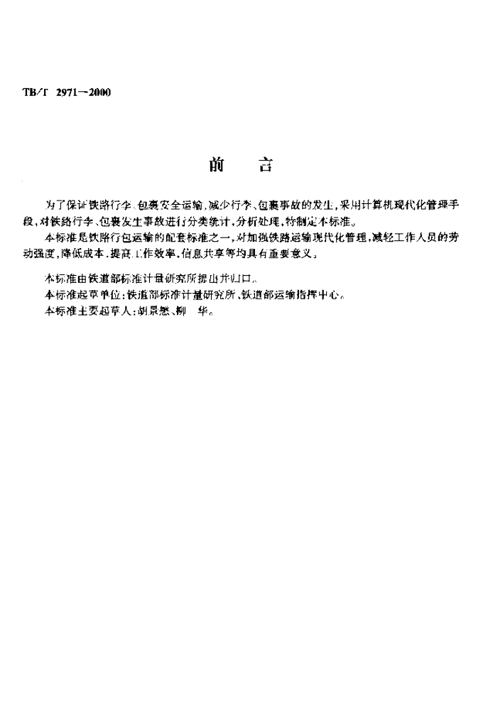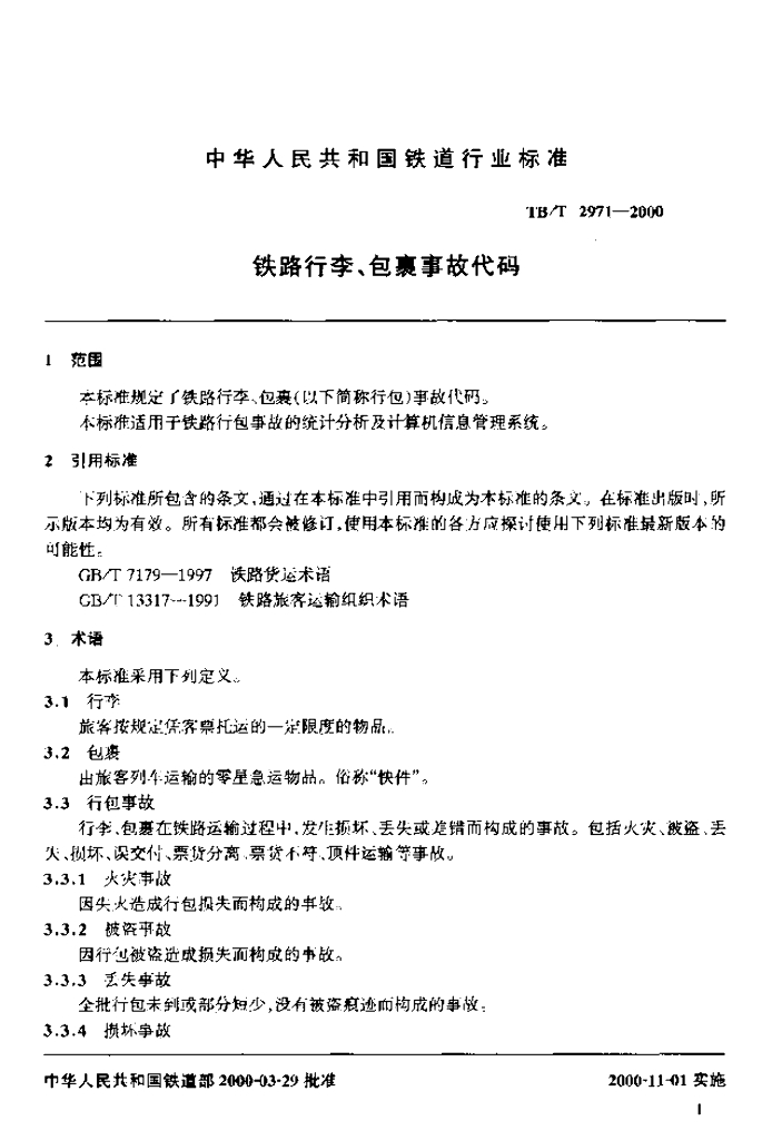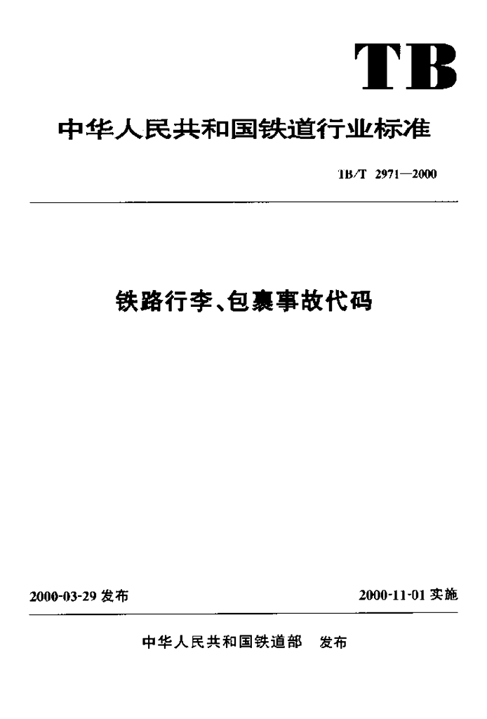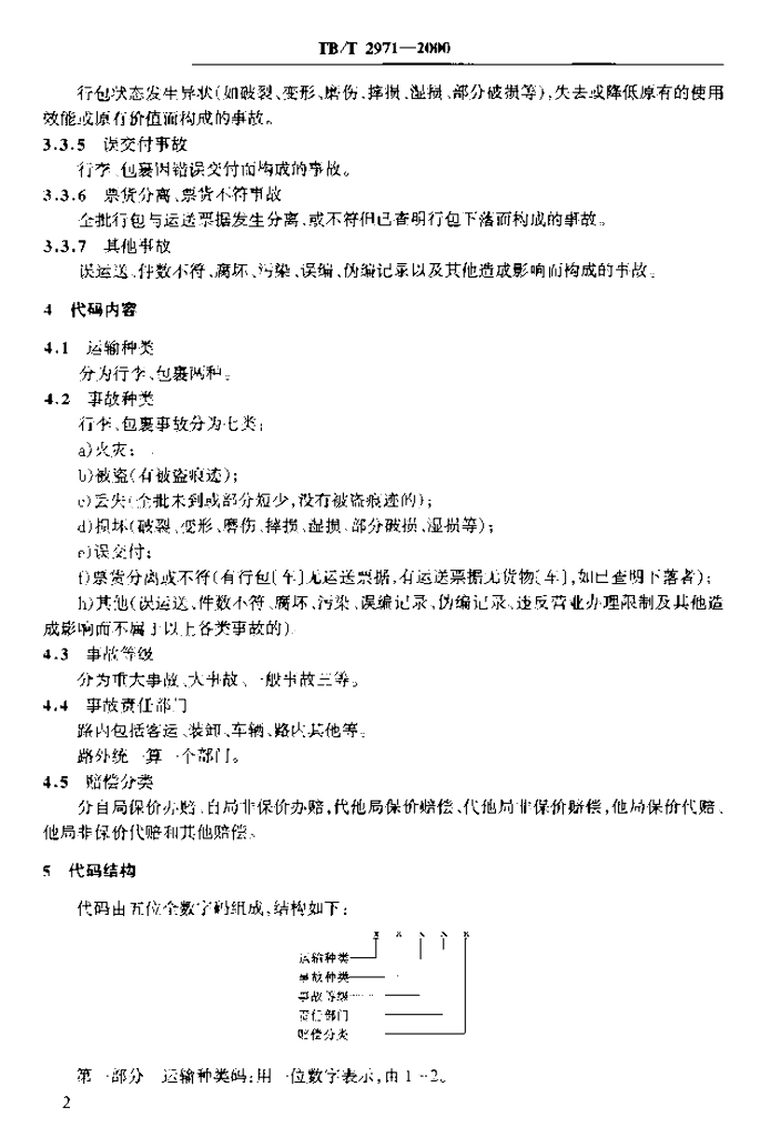 TB/T 2971-2000 铁路行李、包裹事故代码