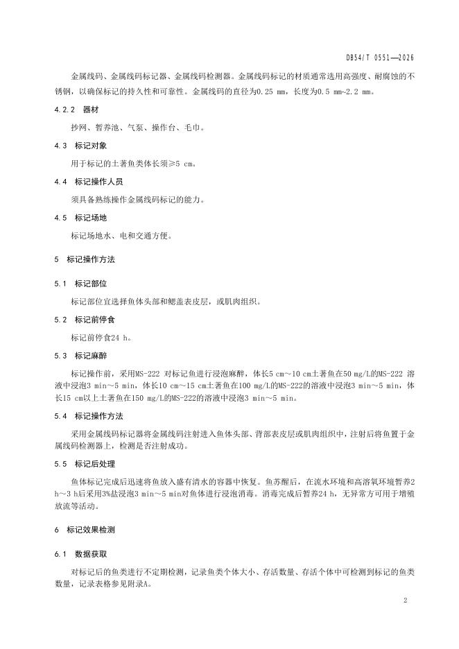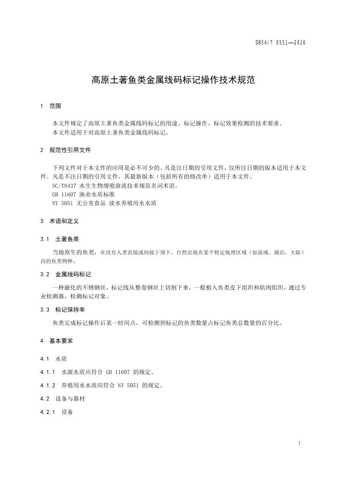 DB54/T 0551-2026 高原土著鱼类金属线码标记操作技术规范
