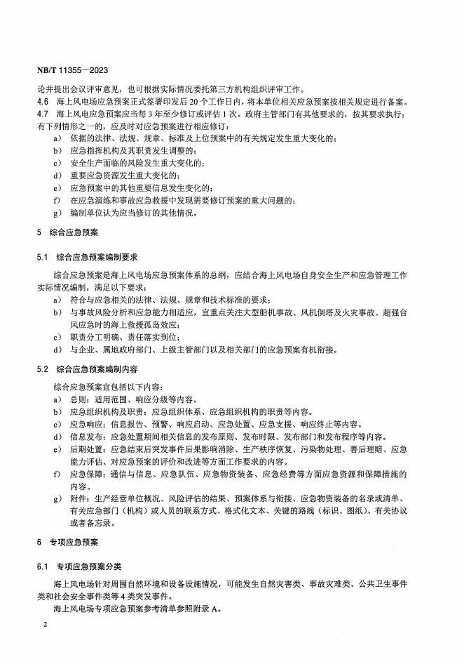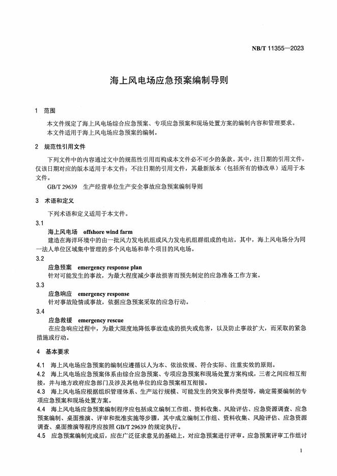 NB/T 11355-2023 海上风电场应急预案编制导则