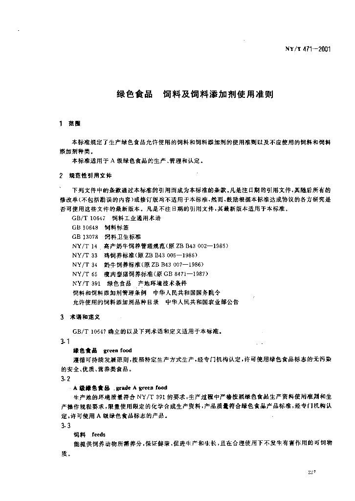 NY/T 471-2001 绿色食品 饲料及饲料添加剂使用准则
