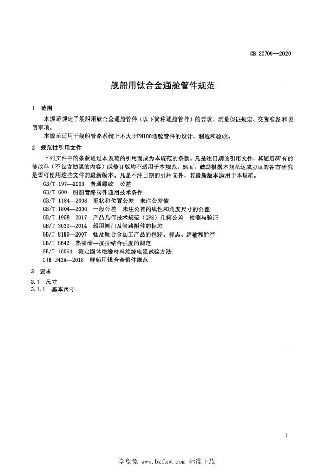 CB 20709-2020 舰船用钛合金通舱管件规范