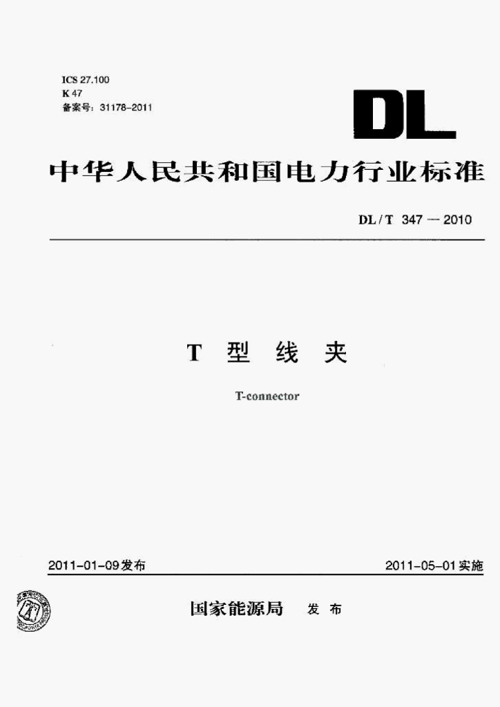DL/T 347-2010 T型线夹