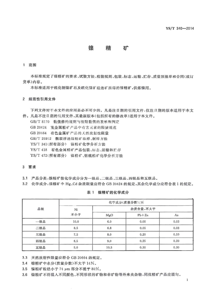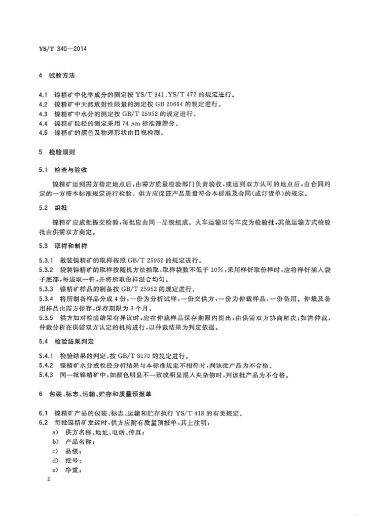 YS/T 340-2014 镍精矿