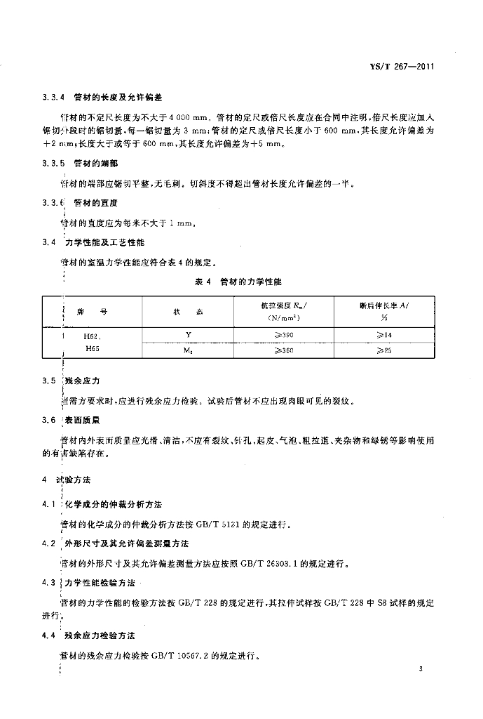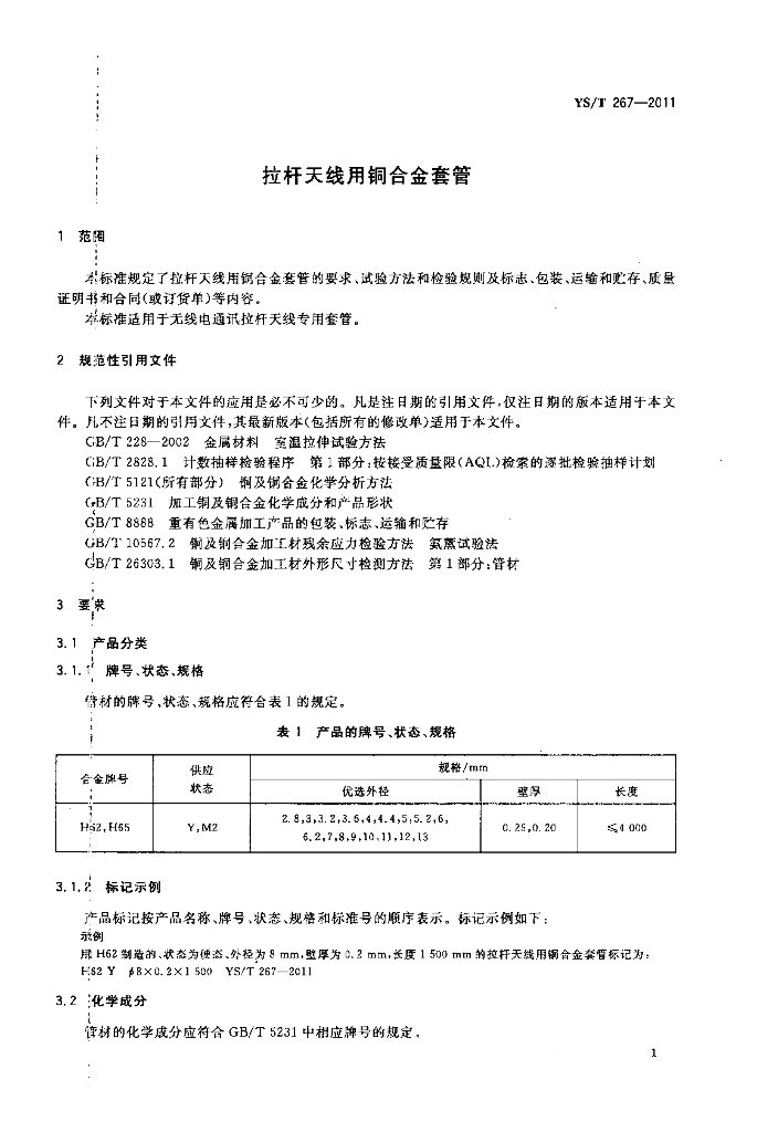 YS/T 267-2011 拉杆天线用铜合金套管