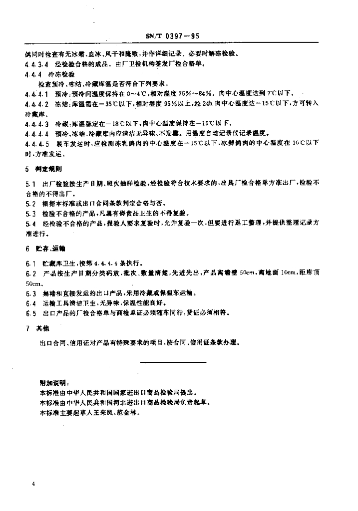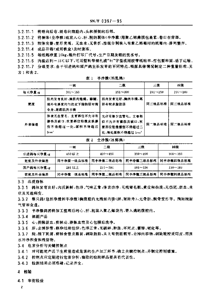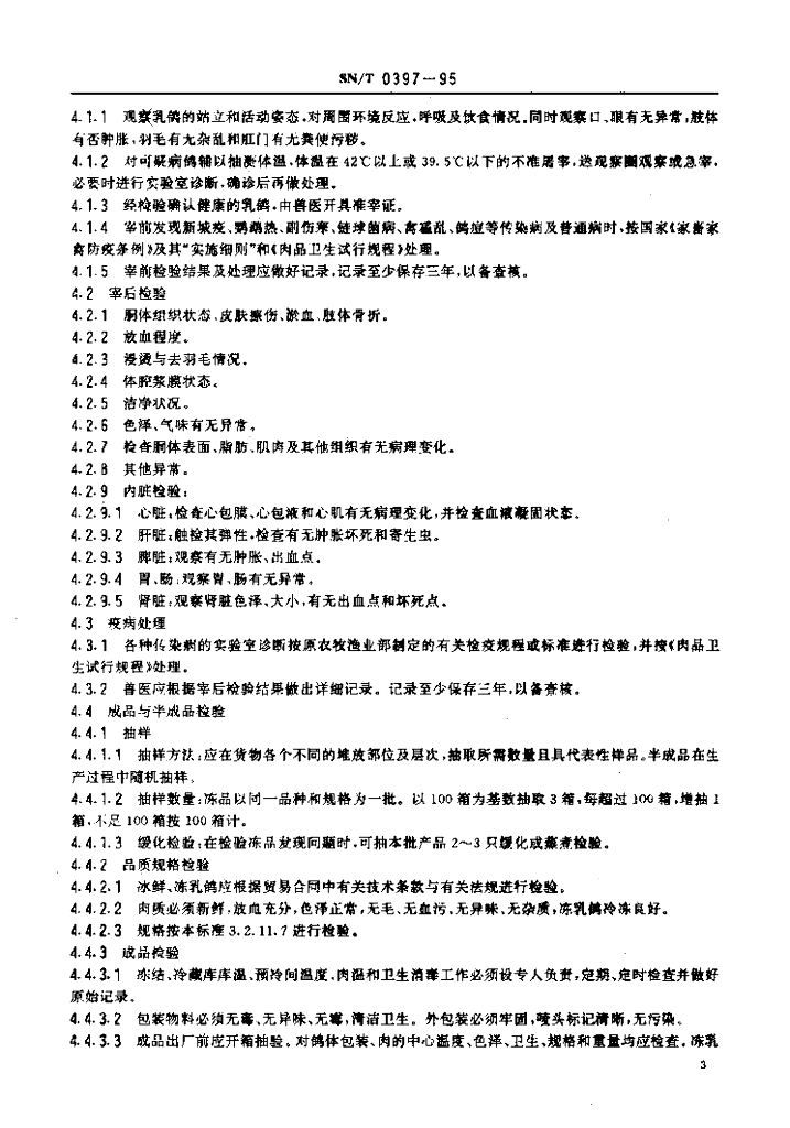 SN/T 0397-1995 出口冻乳鸽检验规程