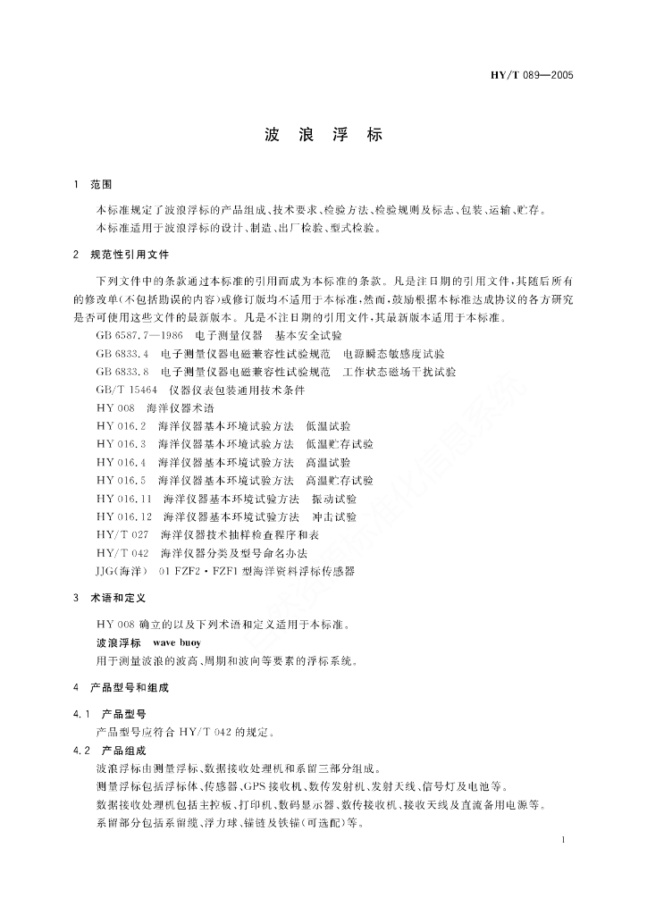 HY/T 089-2005 波浪浮标