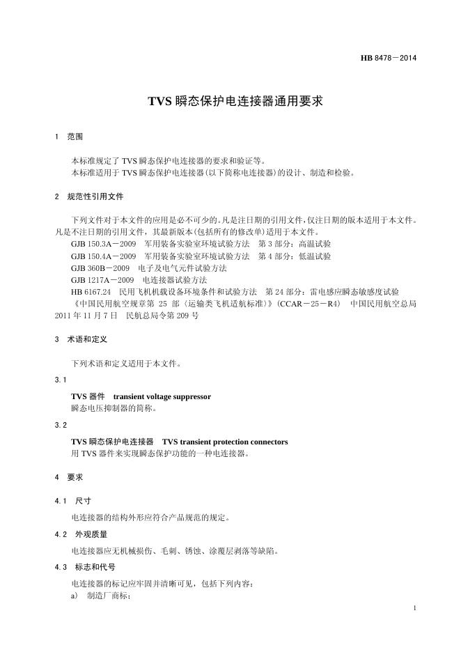 HB 8478-2014(2017) TVS瞬态保护电连接器通用要求