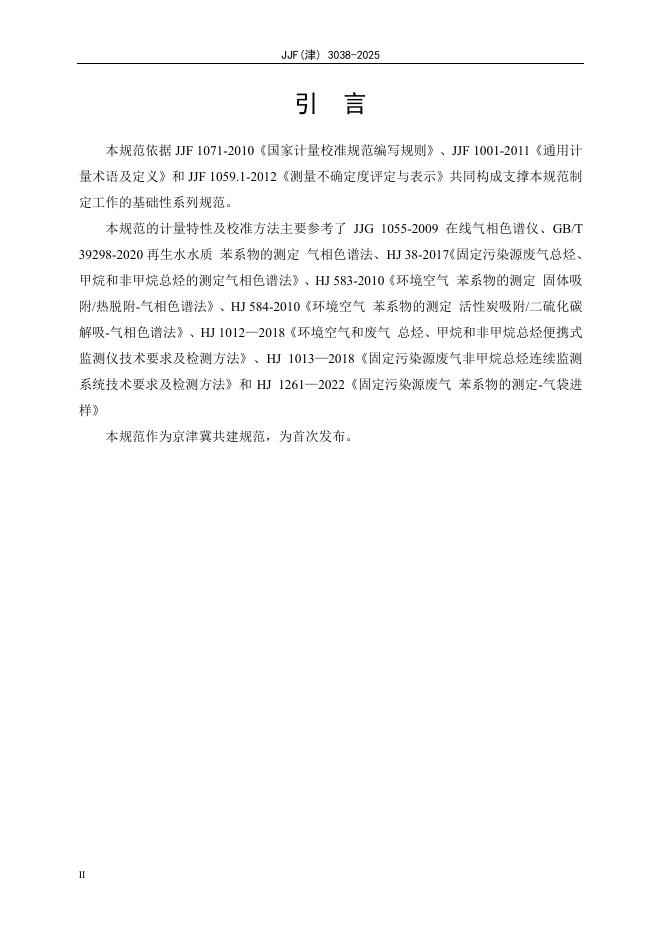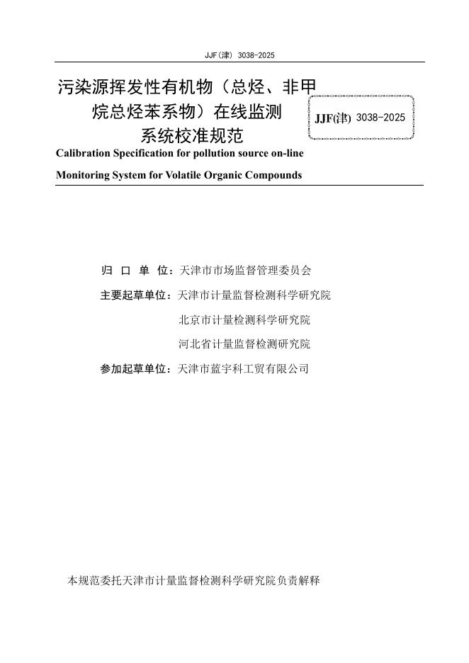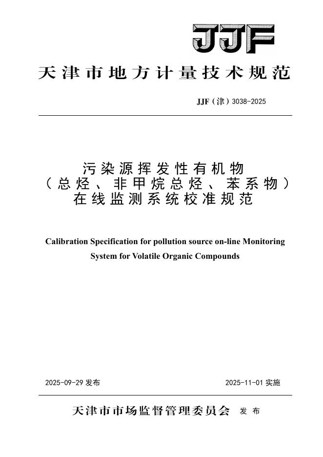 JJF(津)3038-2025 污染源挥发性有机物(总烃、非甲烷总烃、苯系物)在线监测系统校准规范