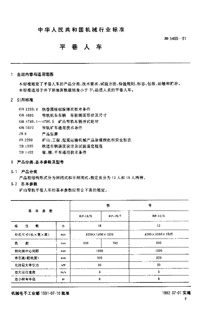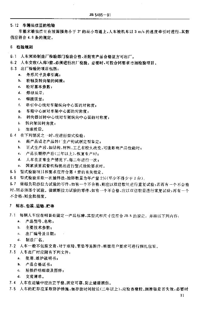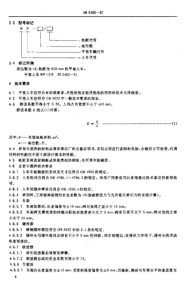 JB/T 5495-1991 平巷人车
