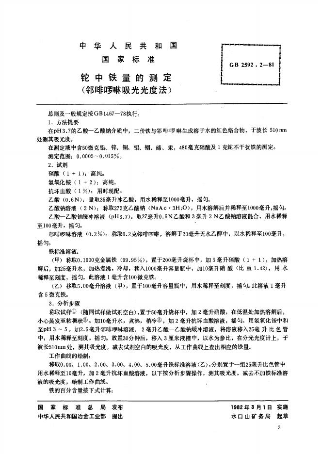 GB/T 2592.2-1981 铊中铁量的测定 邻菲啰啉吸光光度法