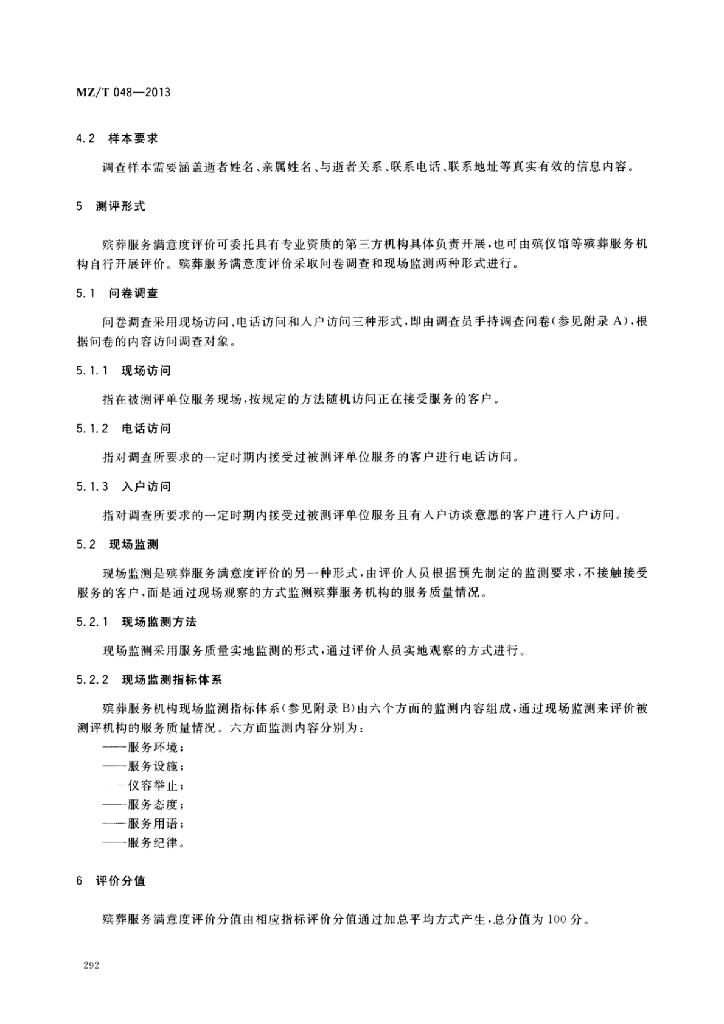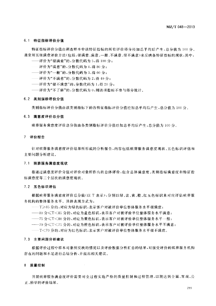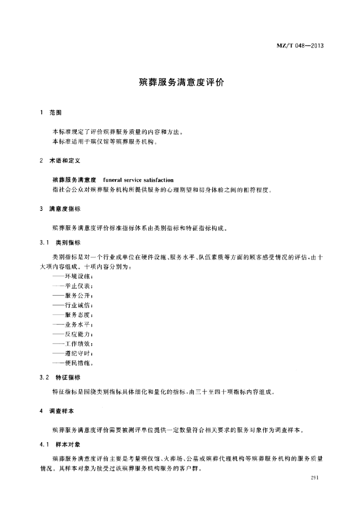 MZ/T 048-2013 殡葬服务满意度评价