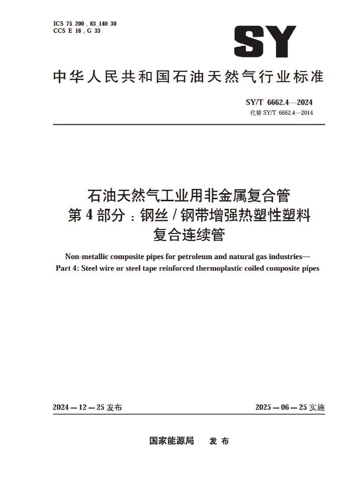 SY/T 6662.4-2024 石油天然气工业用非金属复合管 第4部分:钢丝/钢带增强热塑性塑料复合连续管