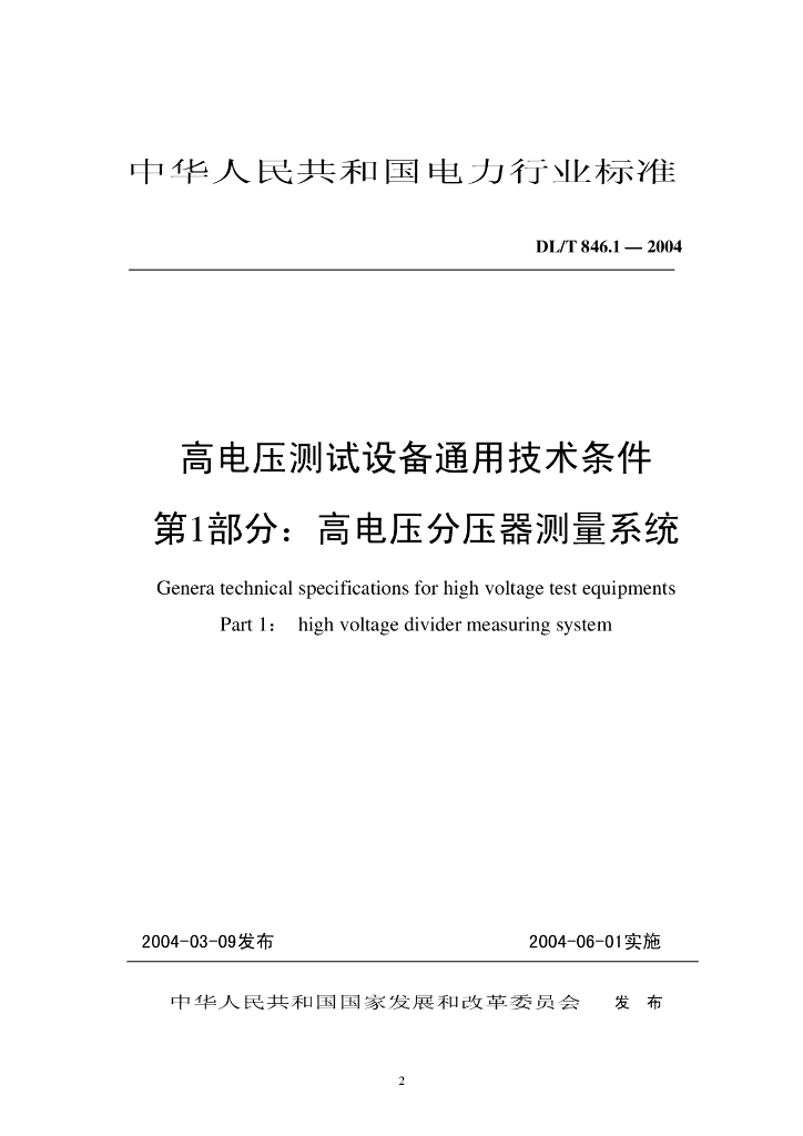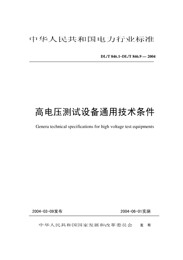 DL/T 846.1~9-2004 高电压测试设备通用技术条件