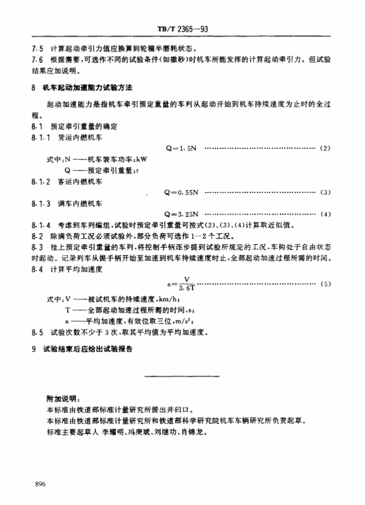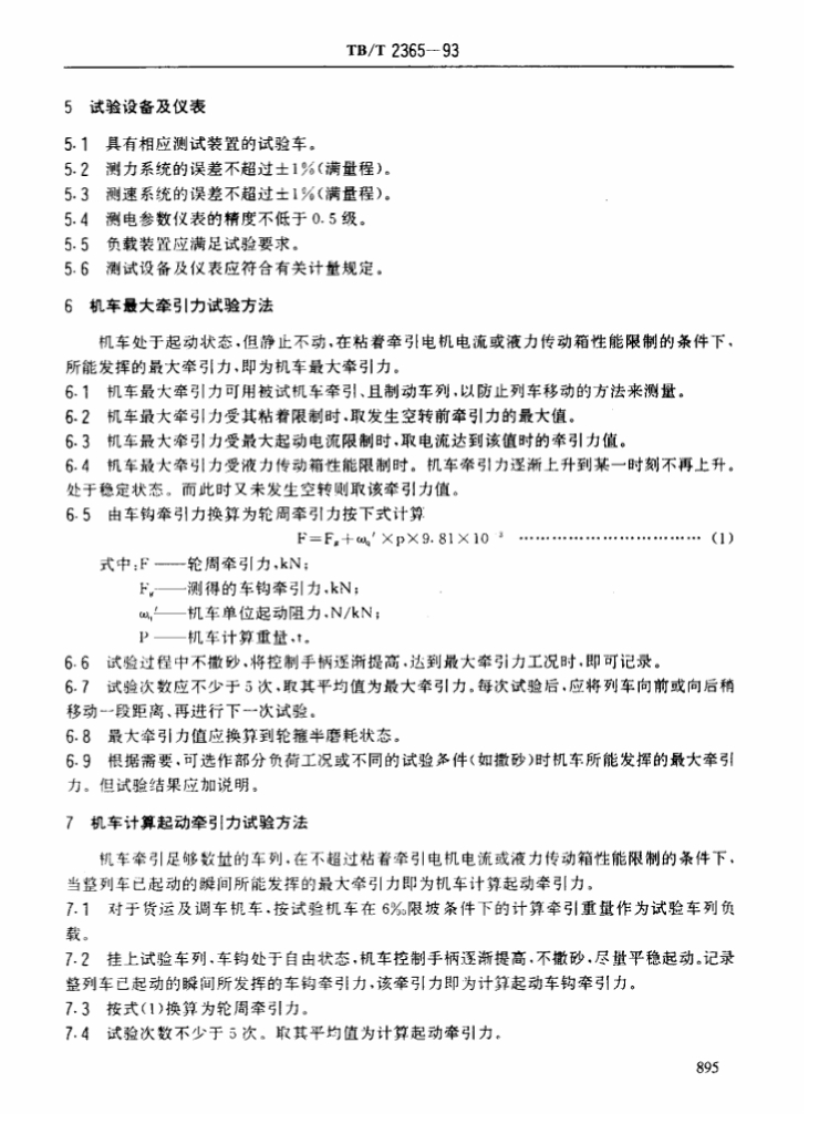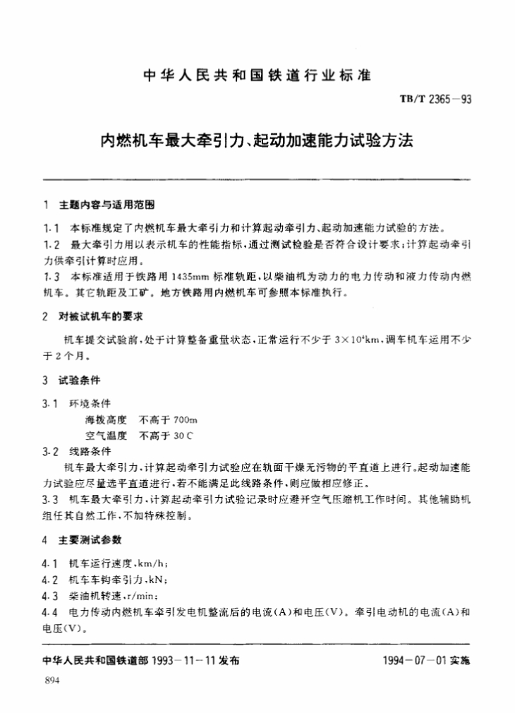TB/T 2365-1993 内燃机车最大牵引力、起动加速能力试验方法
