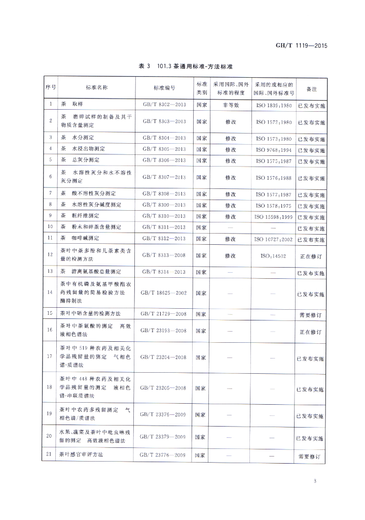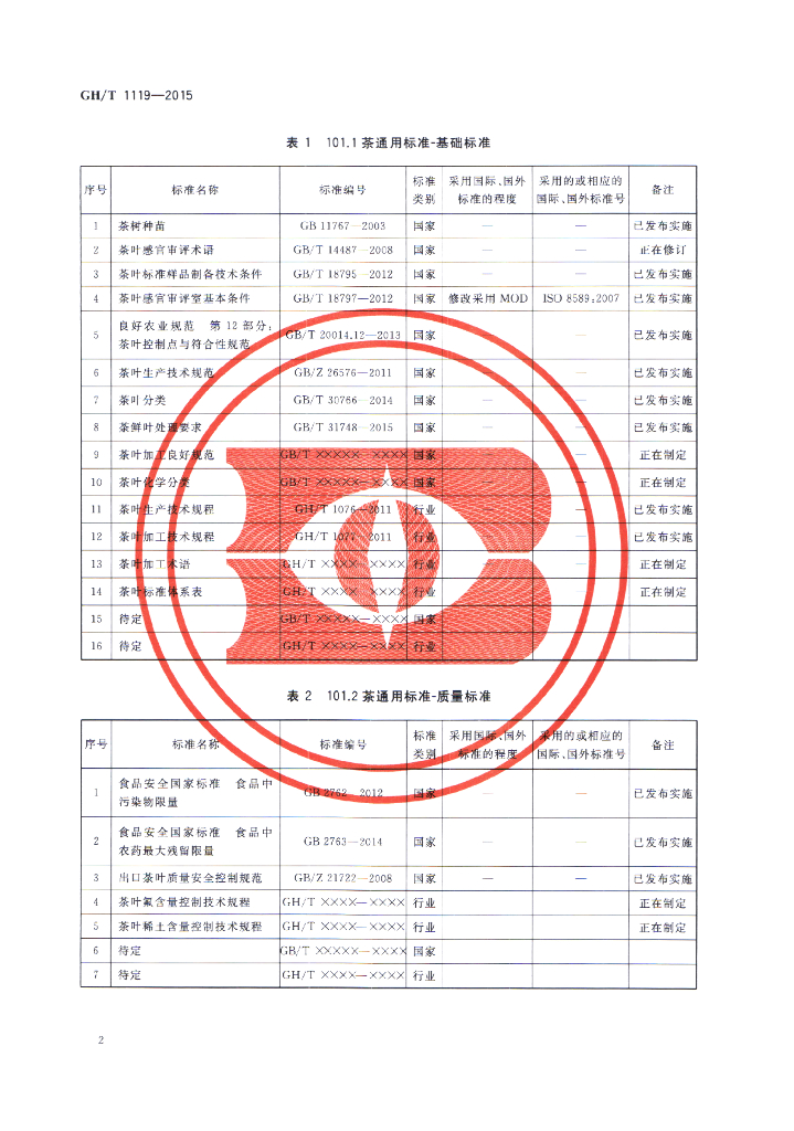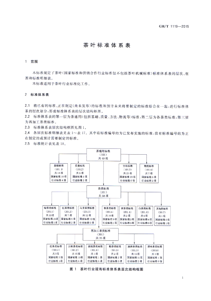 GH/T 1119-2015 茶叶标准体系表