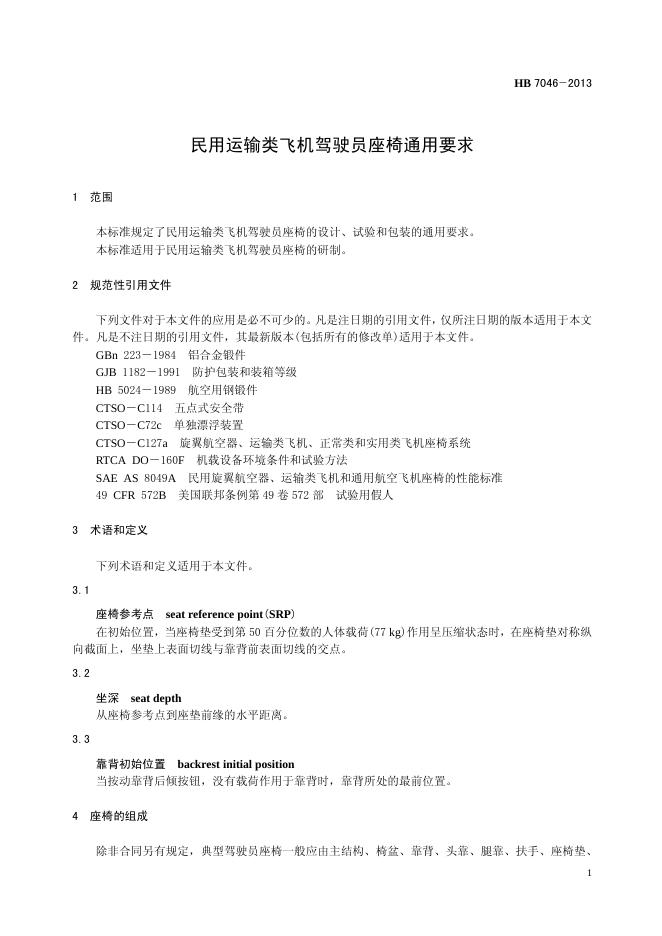 HB 7046-2013(2017) 民用运输类飞机驾驶员座椅通用要求