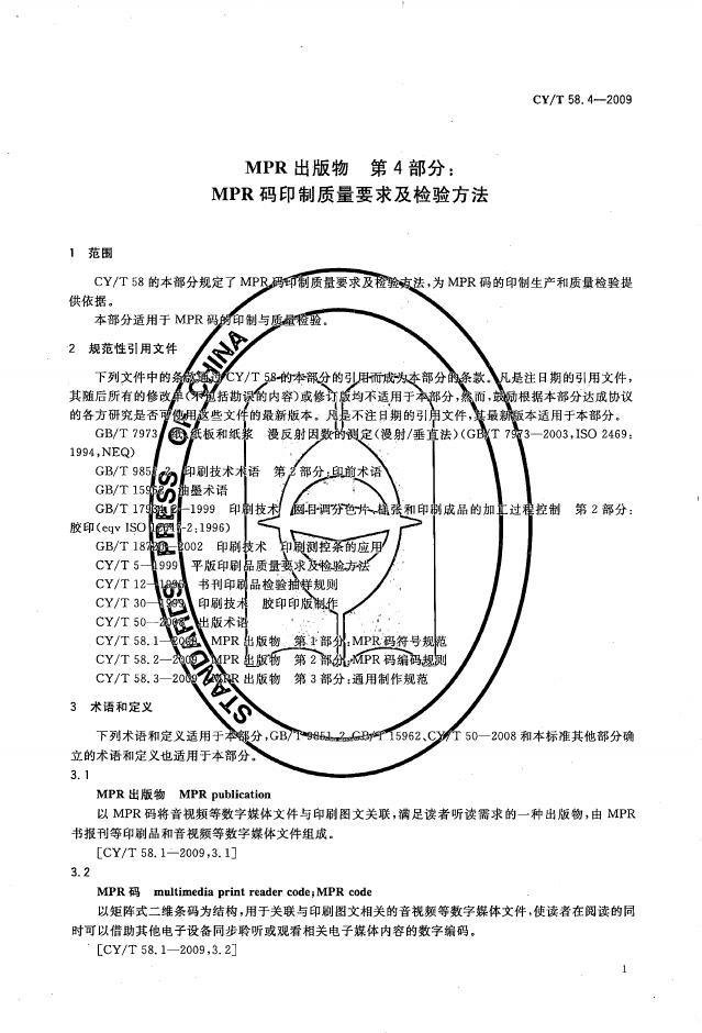 CY/T 58.4-2009 MPR 出版物 第4部分:MPR码印制质量要求及检验方法