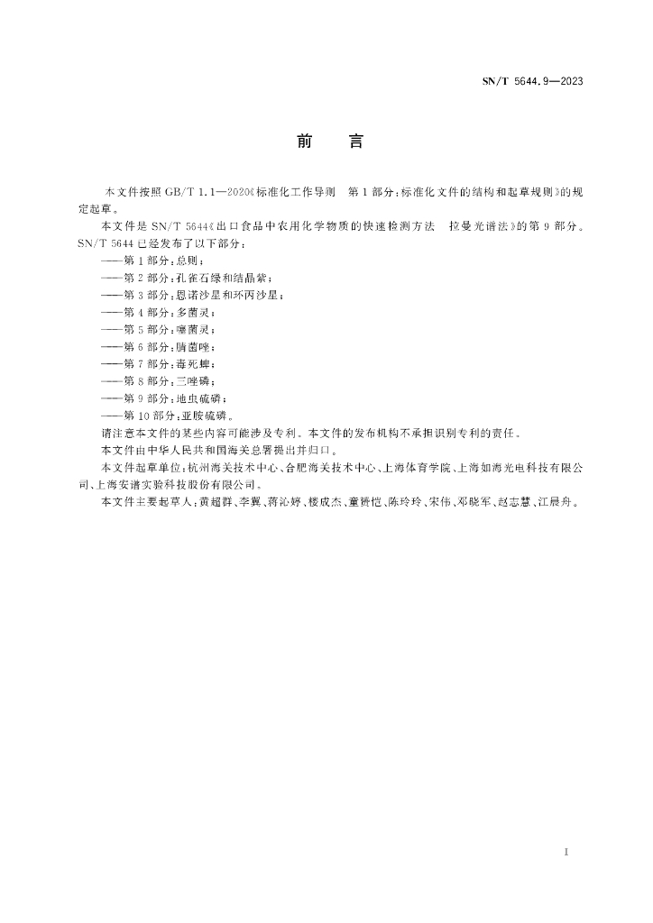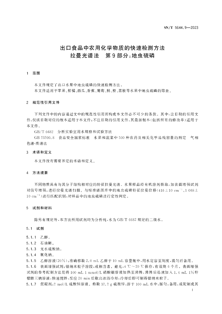 SN/T 5644.9-2023 出口食品中农用化学物质的快速检测方法 拉曼光谱法 第9部分:地虫硫磷