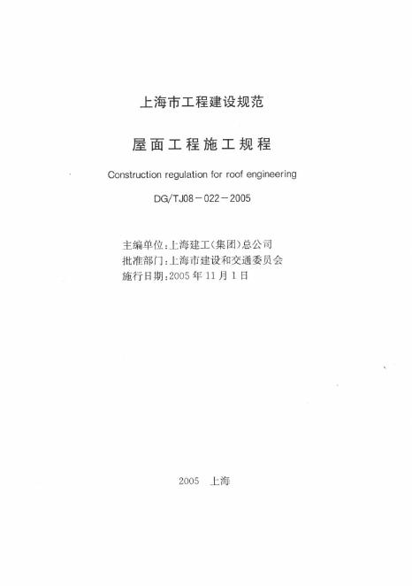 DG/TJ 08-022-2005 屋面工程施工规程
