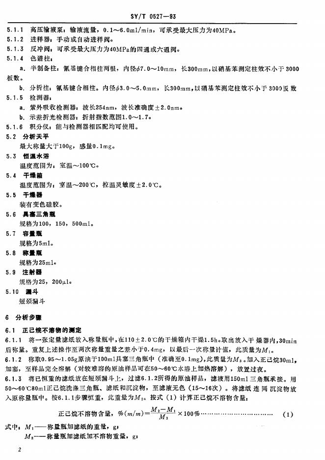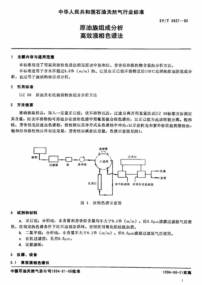 SY/T 0527-1993 原油族组成分析 高效液相色谱法
