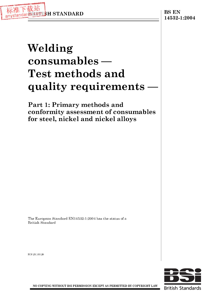 BS EN 14532-1-2004 焊接消耗品.试验方法和质量要求.钢、镍和镍合金消耗品的基本方法和合格评定