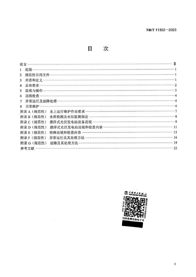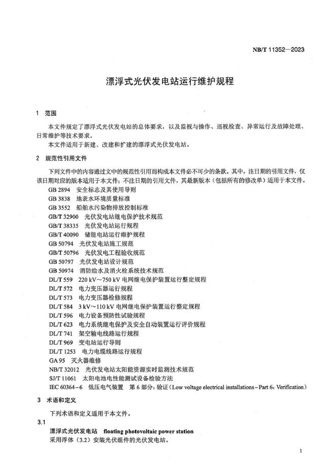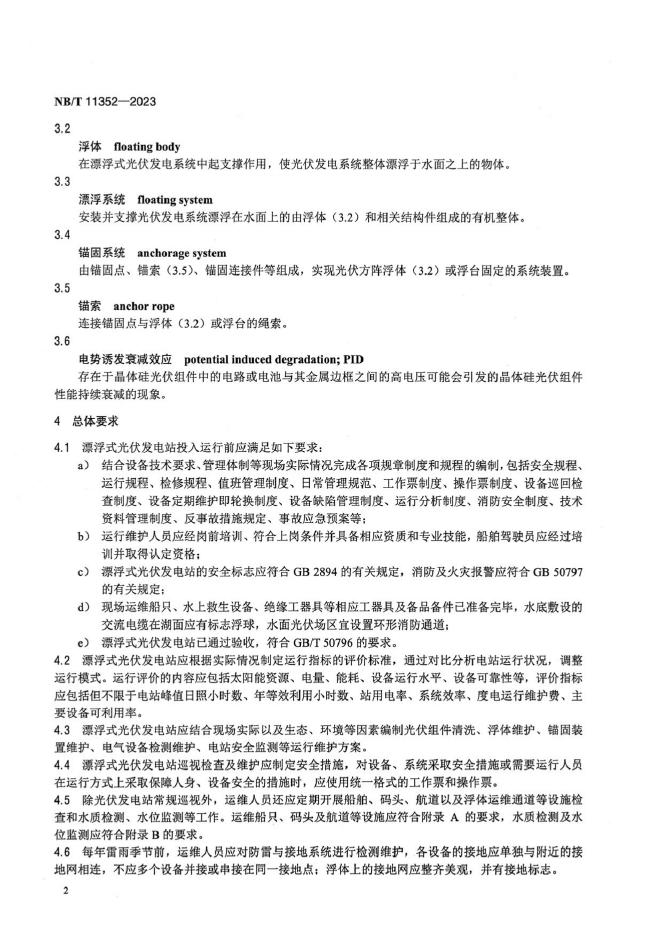 NB/T 11352-2023 漂浮式光伏发电站运行维护规程