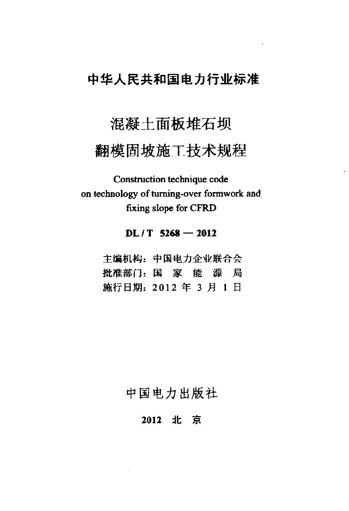 DL/T 5268-2012 混凝土面板堆石坝翻模固坡施工技术规程