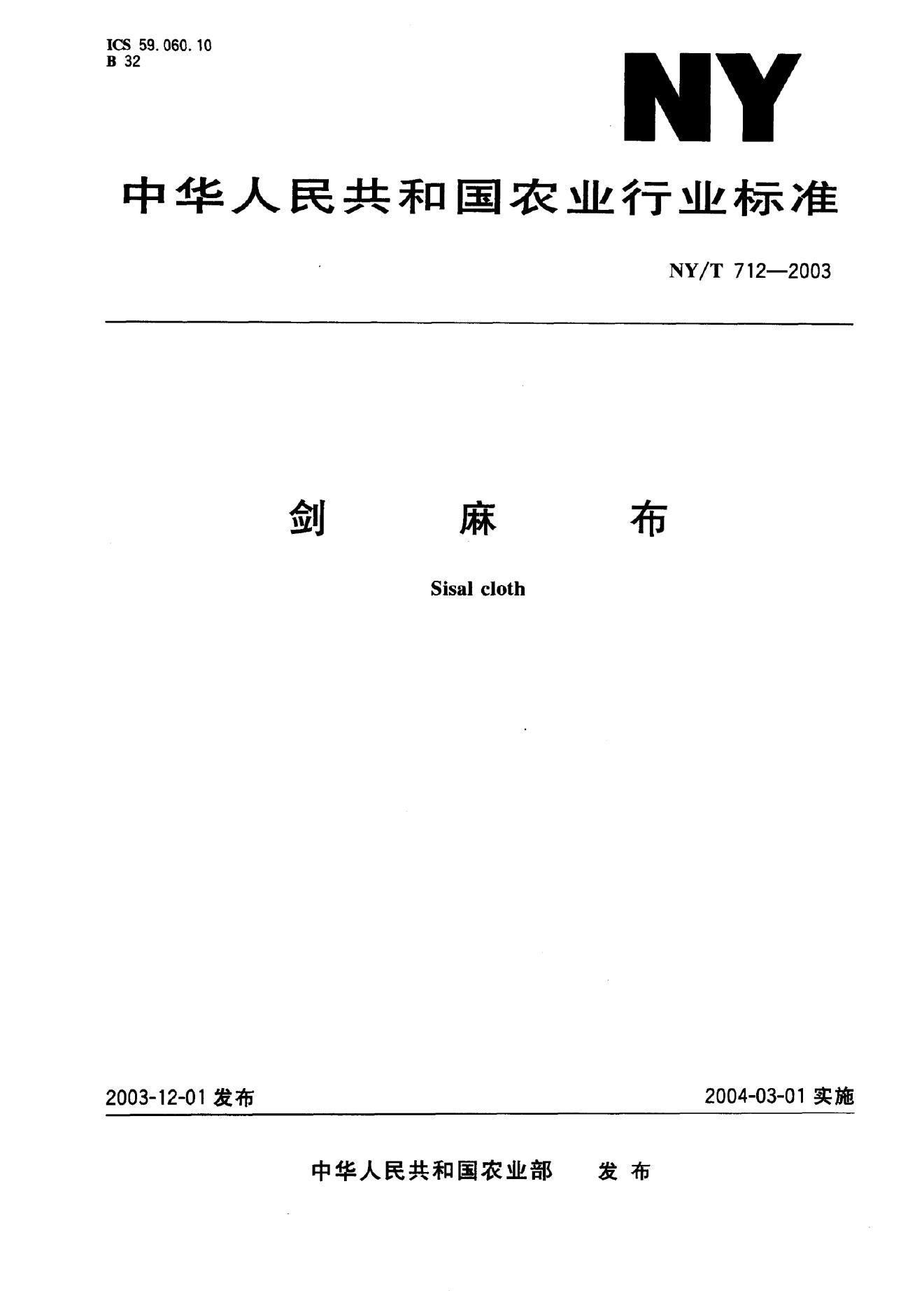 NY/T 712-2003 剑麻布