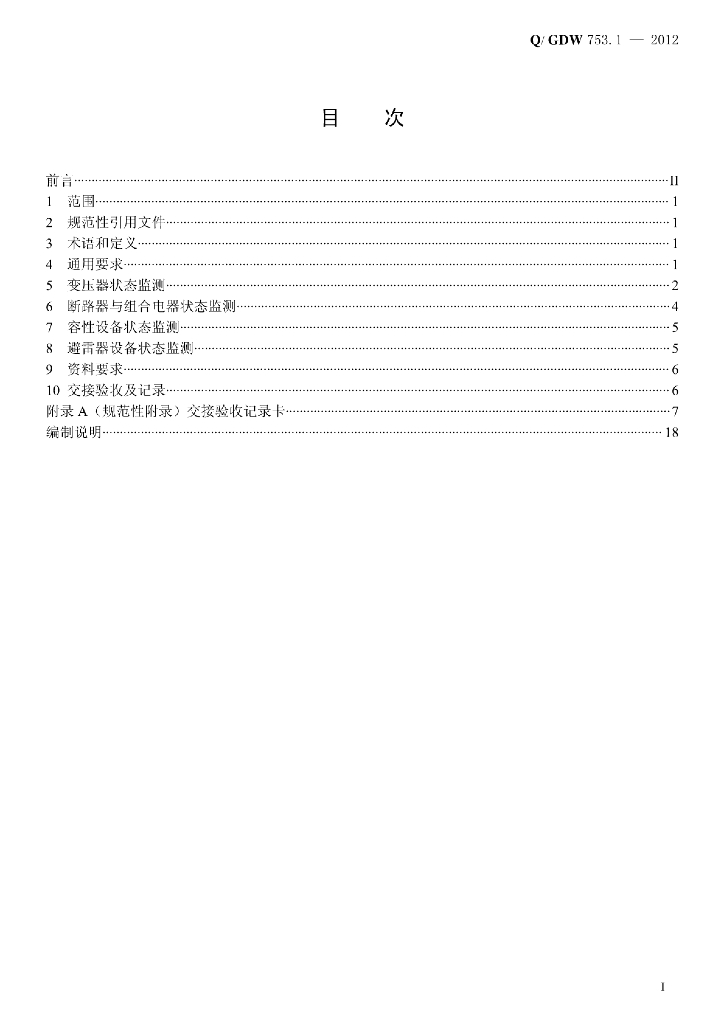 Q/GDW 753.1-2012 智能设备交接验收规范 第1部分:一次设备状态监测