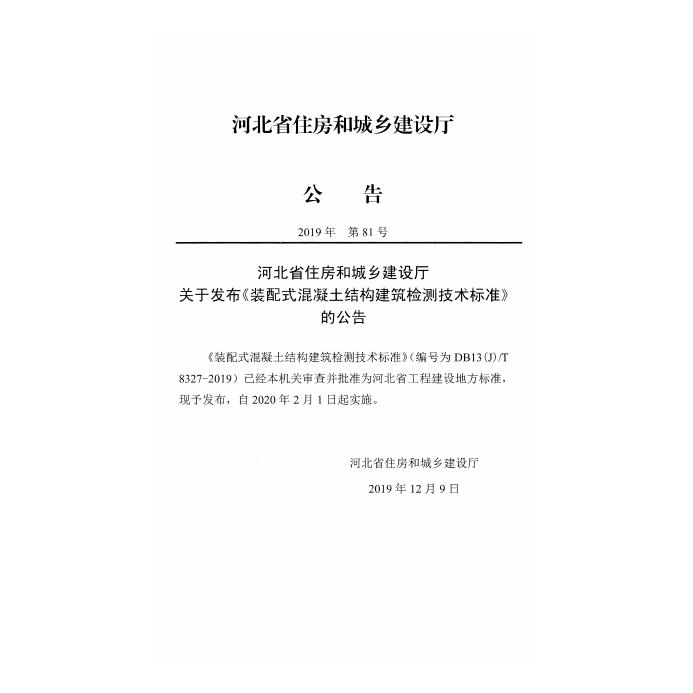 DB13(J)/T 8327-2019 装配式混凝土结构建筑检测技术标准