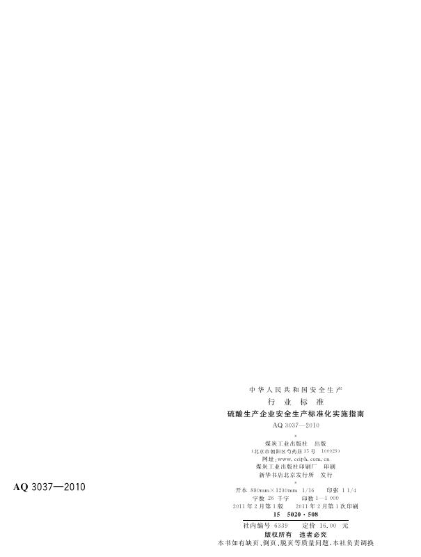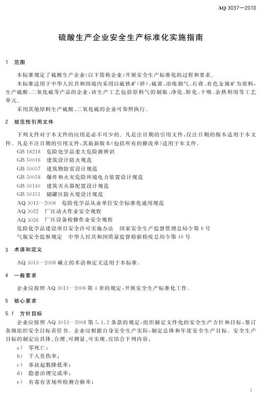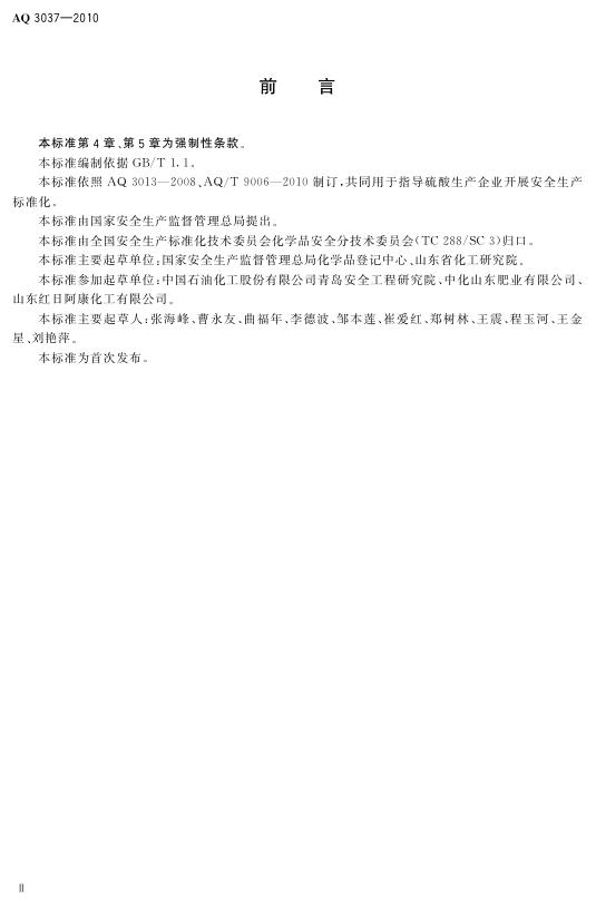 AQ 3037-2010 硫酸生产企业安全生产标准化实施指南