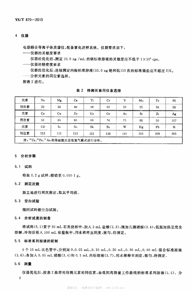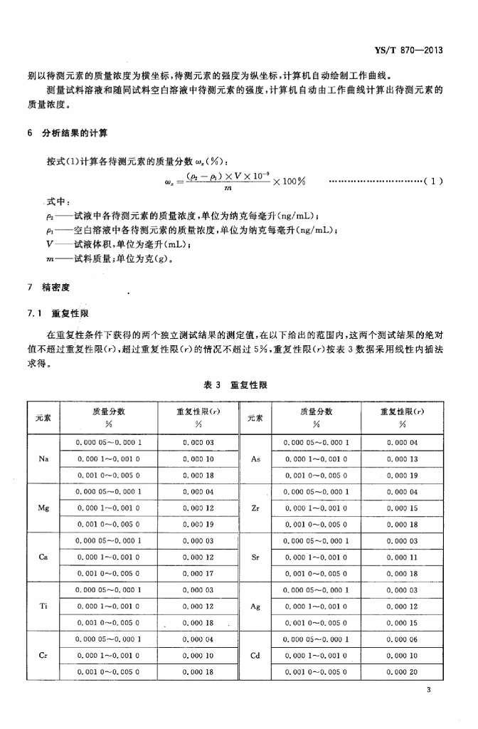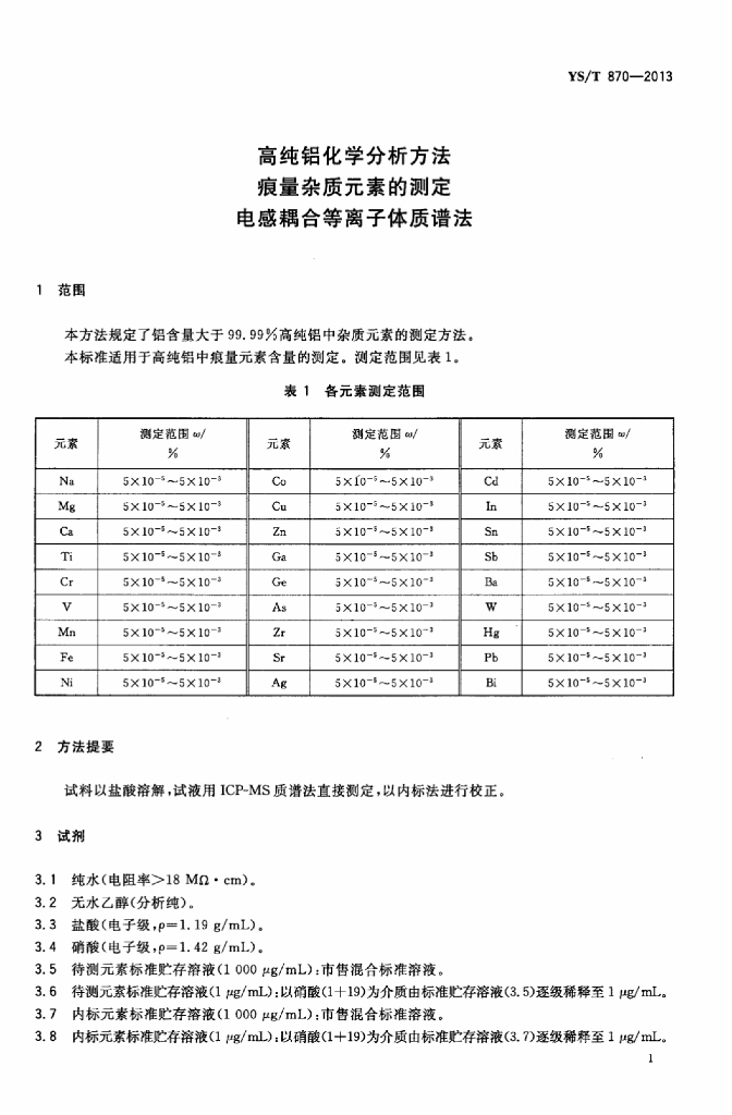 YS/T 870-2013 高纯铝化学分析方法 痕量杂质元素的测定 电感耦合等离子体质谱法