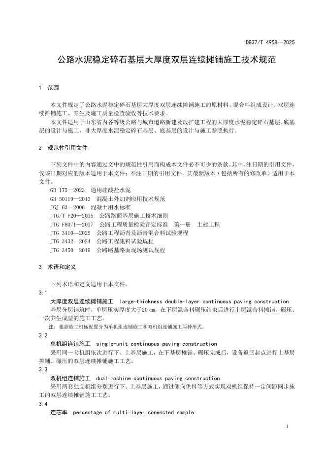 DB37/T 4958-2025 公路水泥稳定碎石基层大厚度双层连续摊铺施工技术规范