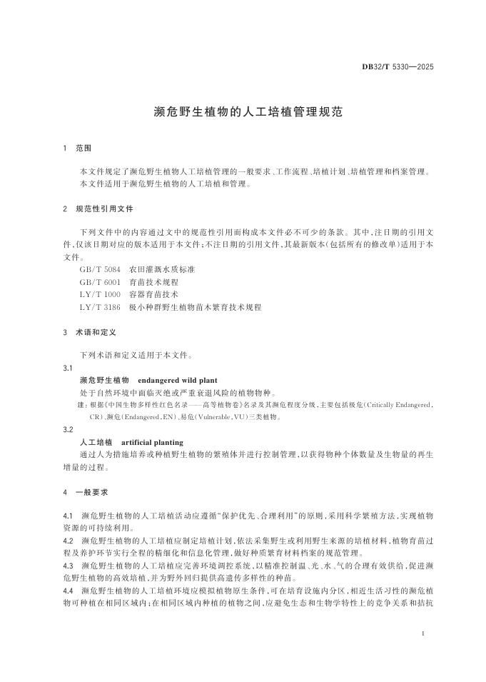 DB32/T 5330-2025 濒危野生植物的人工培植管理规范