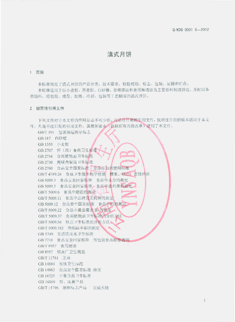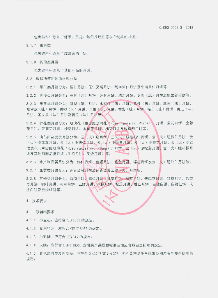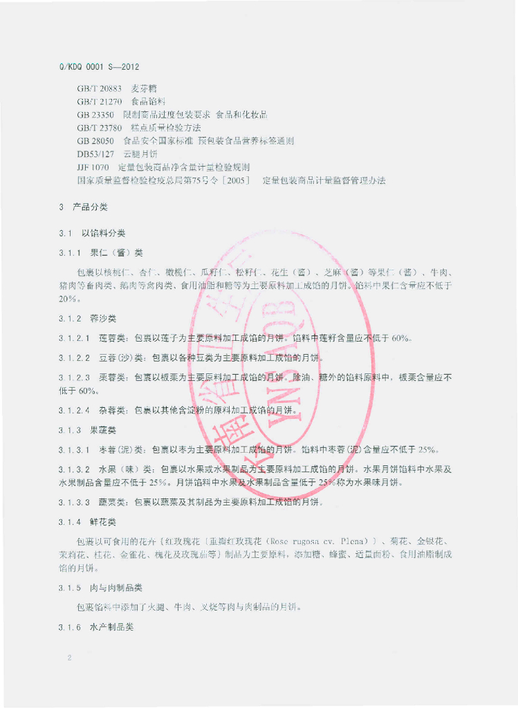 Q/KDQ 0001S-2012 滇式月饼