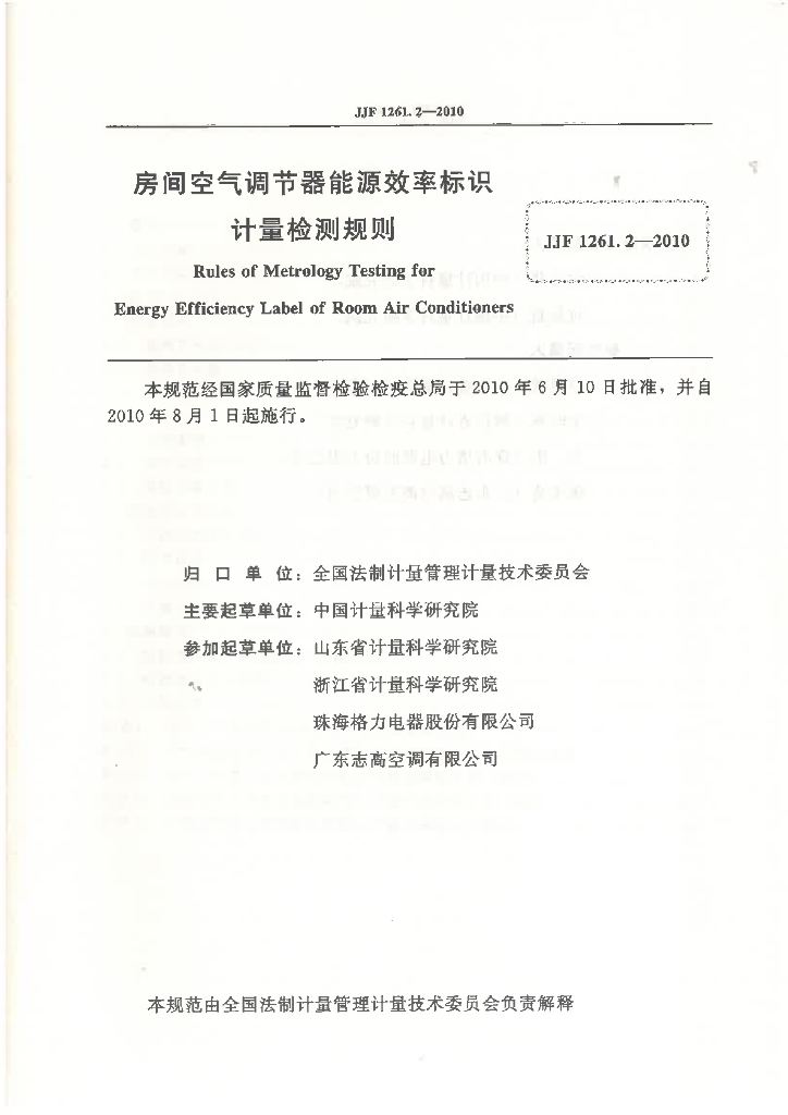 中国计量科学研究院、山东省计量科学研究院、浙江省计量科学研究院、珠海格力电器股份有限公司、广东志高空调有限公司
