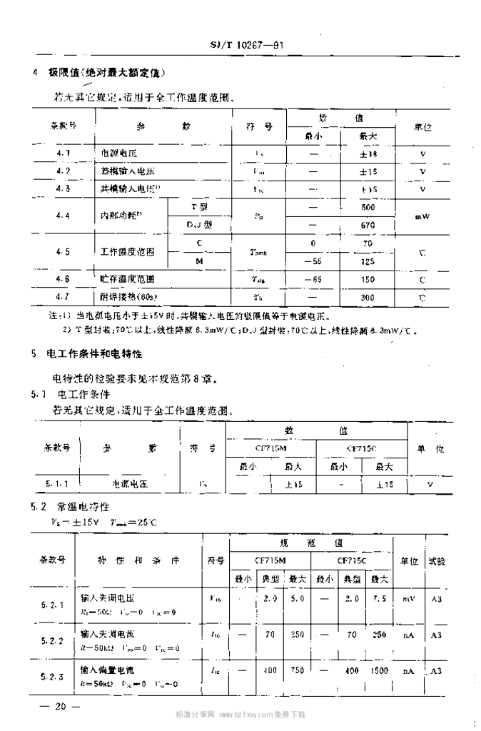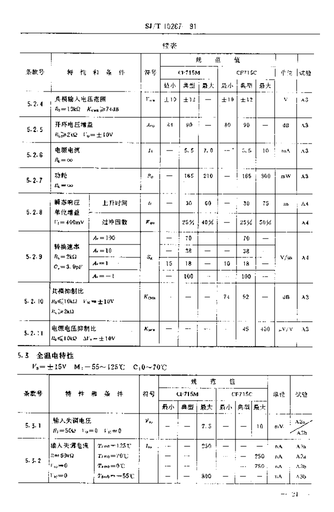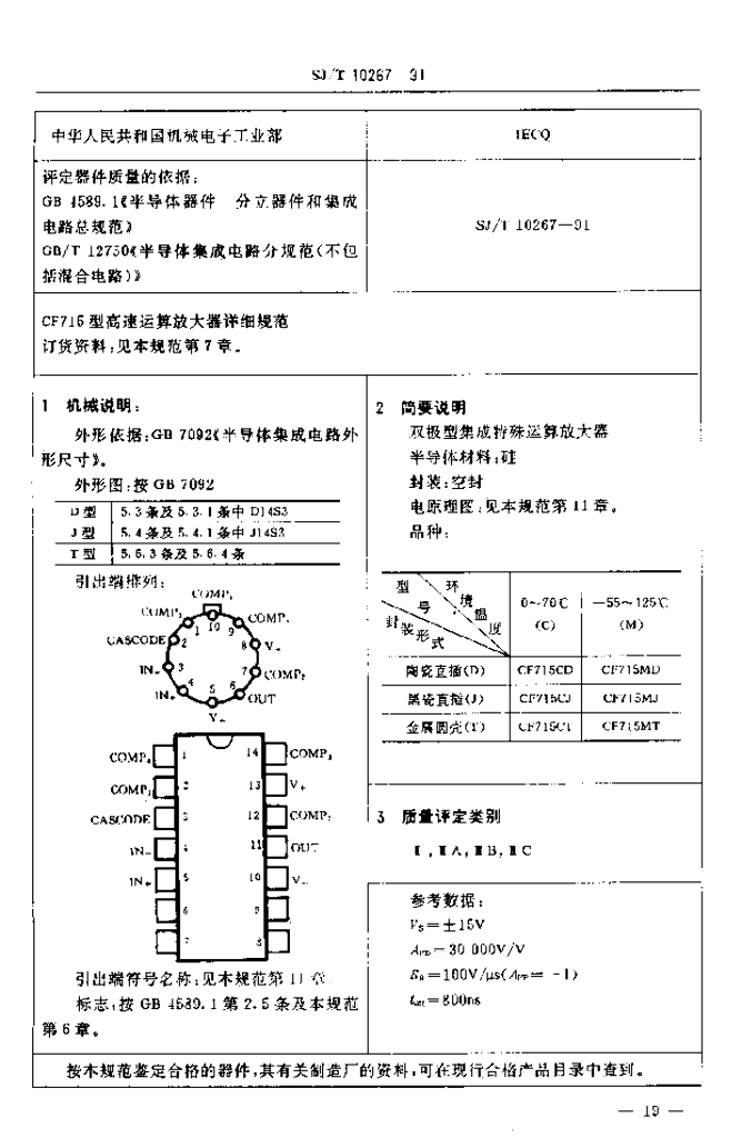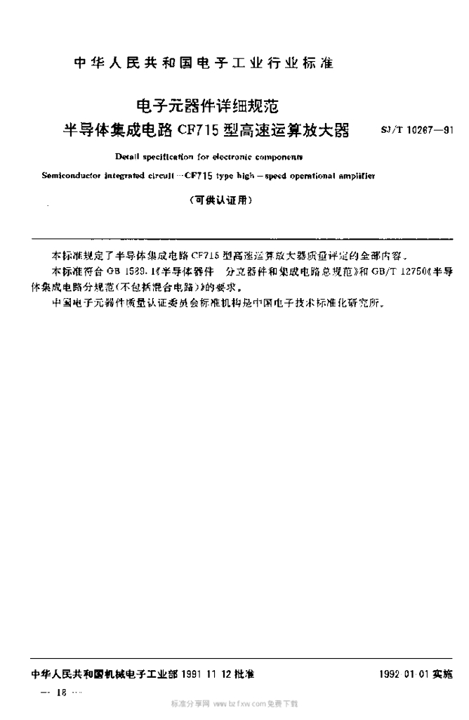 SJ/T 10267-1991 电子元器件详细规范半导体集成电路CF715型高速运算放大器