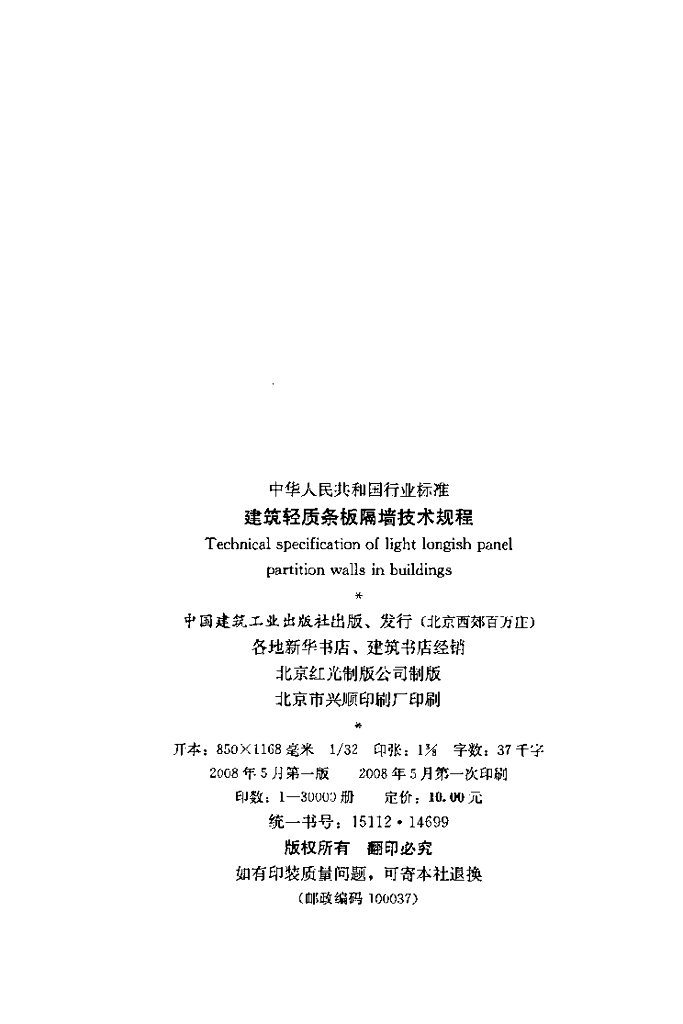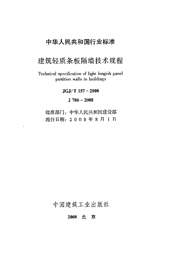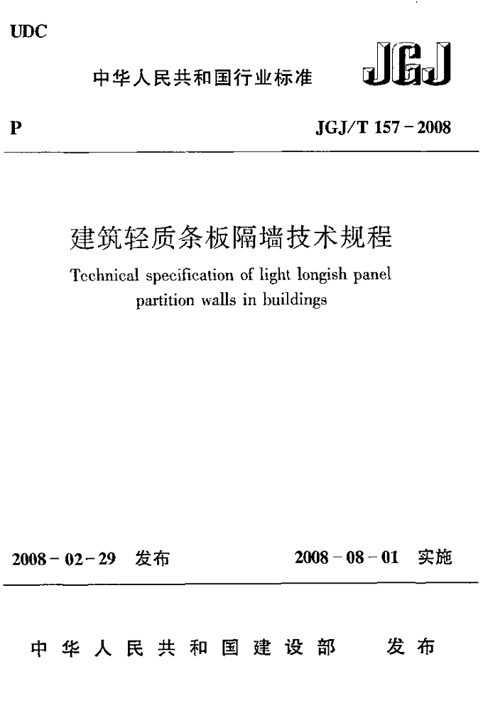 JGJ/T 157-2008 建筑轻质条板隔墙技术规程