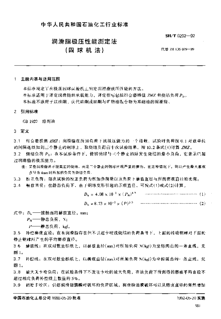 SH/T 0202-1992 润滑脂极压性能测定法(四球机法)