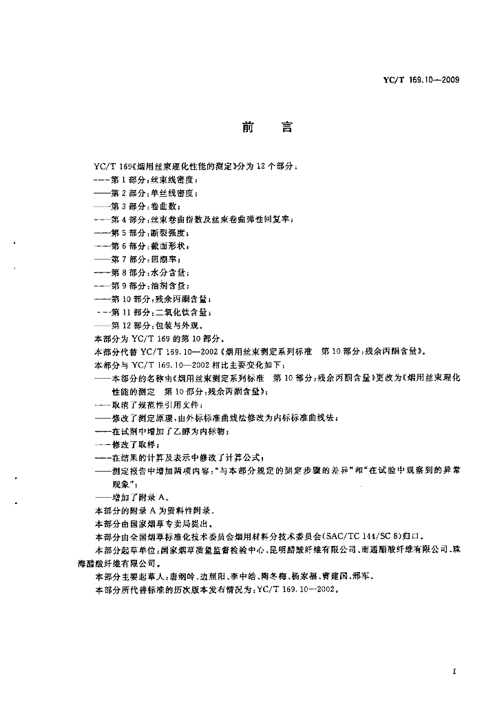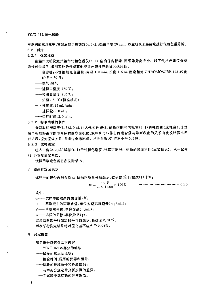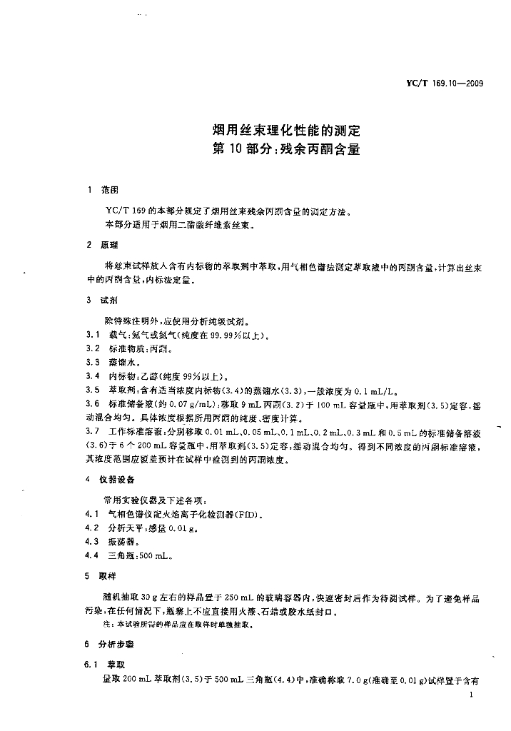 YC/T 169.10-2009 烟用丝束理化性能的测定 第10部分:残余丙酮含量